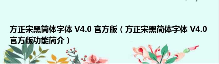 方正宋黑简体字体 V4.0 官方版(方正宋黑简体字体 V4.0 官方版功能简介)