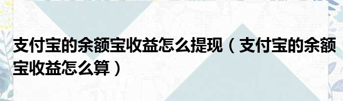 支付宝的余额宝收益怎么提现(支付宝的余额宝收益怎么算)