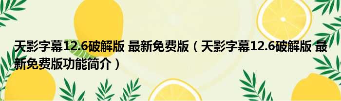 天影字幕12.6破解版 最新免费版(天影字幕12.6破解版 最新免费版功能简介)