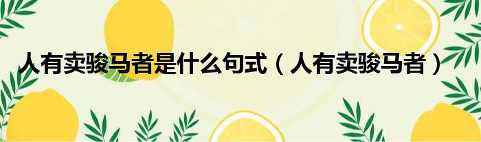 导读 大家好,今天小六子来为大家解答以下的问题,关于人有卖骏马者是什么句式,人有卖骏马者这个很多人还不知道,现在让我们一起来看看吧!1、《