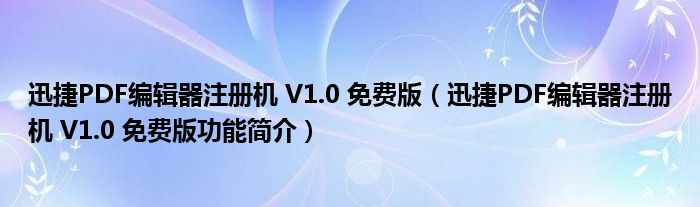 迅捷PDF编辑器注册机 V1.0 免费版(迅捷PDF编辑器注册机 V1.0 免费版功能简介)