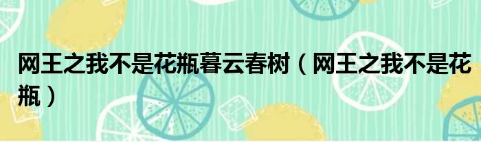 网王之我不是花瓶暮云春树(网王之我不是花瓶)