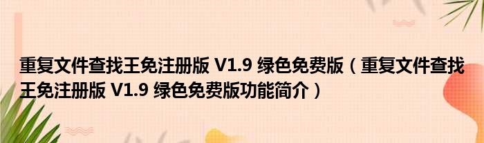 重复文件查找王免注册版 V1.9 绿色免费版(重复文件查找王免注册版 V1.9 绿色免费版功能简介)