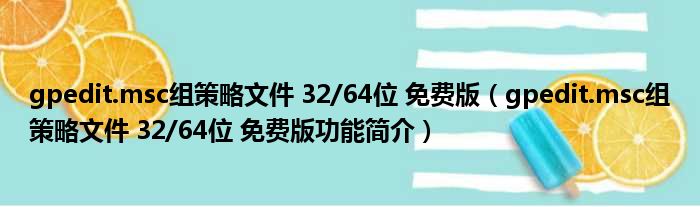 gpedit.msc组策略文件 32/64位 免费版(gpedit.msc组策略文件 32/64位 免费版功能简介)