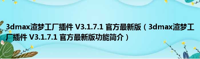 3dmax渲梦工厂插件 V3.1.7.1 官方最新版(3dmax渲梦工厂插件 V3.1.7.1 官方最新版功能简介)