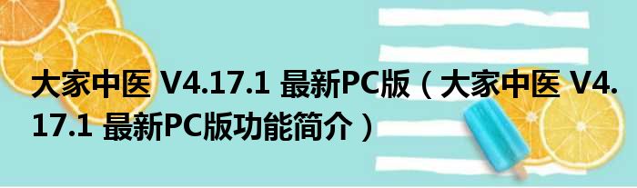 大家中医 V4.17.1 最新PC版(大家中医 V4.17.1 最新PC版功能简介)