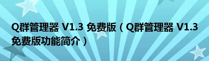 Q群管理器 V1.3 免费版(Q群管理器 V1.3 免费版功能简介)