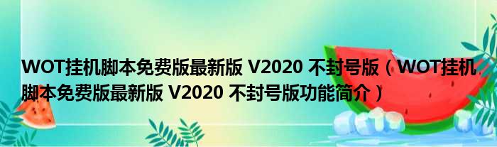 导读 大家好,关于WOT挂机脚本免费版最新版 V2020 不封号版,WOT挂机脚本免费版最新版 V2020 不封号版功能简介这个很多人还不知道,小勒来为大
