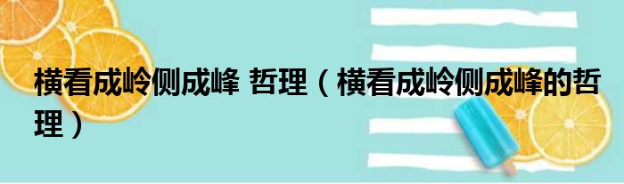 横看成岭侧成峰 哲理(横看成岭侧成峰的哲理)