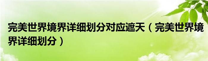 完美世界境界详细划分对应遮天(完美世界境界详细划分)