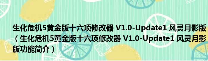 生化危机5黄金版十六项修改器 V1.0-Update1 风灵月影版(生化危机5黄金版十六项修改器 V1.0-Update1 风灵月影版功能简介)