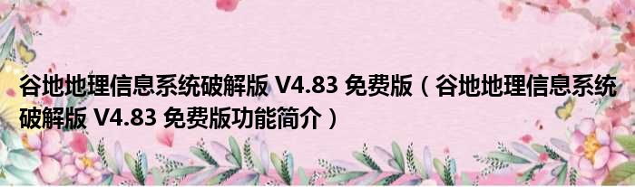 谷地地理信息系统破解版 V4.83 免费版(谷地地理信息系统破解版 V4.83 免费版功能简介)