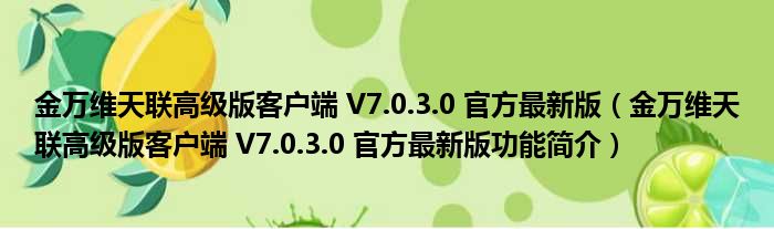 金万维天联高级版客户端 V7.0.3.0 官方最新版(金万维天联高级版客户端 V7.0.3.0 官方最新版功能简介)