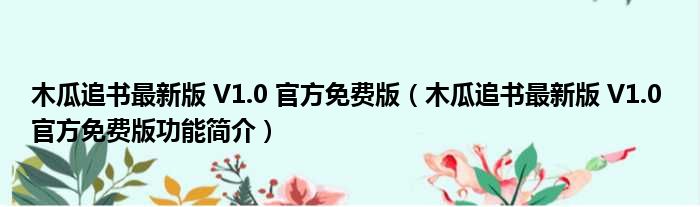 木瓜追书最新版 V1.0 官方免费版(木瓜追书最新版 V1.0 官方免费版功能简介)