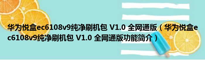 华为悦盒ec6108v9纯净刷机包 V1.0 全网通版(华为悦盒ec6108v9纯净刷机包 V1.0 全网通版功能简介)