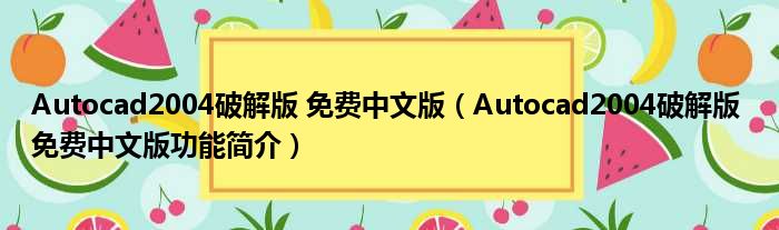 Autocad2004破解版 免费中文版(Autocad2004破解版 免费中文版功能简介)