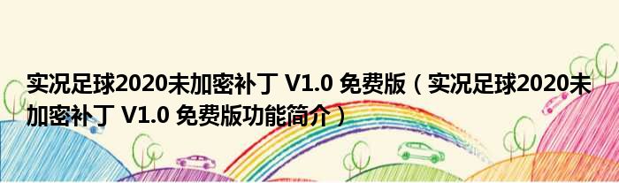 实况足球2020未加密补丁 V1.0 免费版(实况足球2020未加密补丁 V1.0 免费版功能简介)
