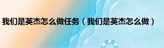 我们是英杰怎么做任务(我们是英杰怎么做)