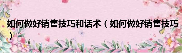如何做好销售技巧和话术(如何做好销售技巧)