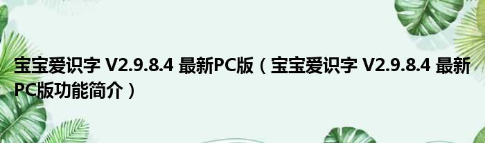 导读 大家好,关于宝宝爱识字 V2 9 8 4 最新PC版,宝宝爱识字 V2 9 8 4 最新PC版功能简介这个很多人还不知道,小勒来为大家解答以上的问题,现