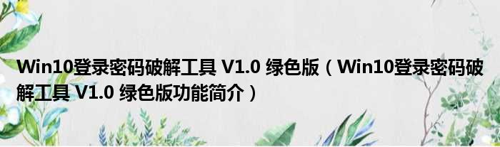 Win10登录密码破解工具 V1.0 绿色版(Win10登录密码破解工具 V1.0 绿色版功能简介)