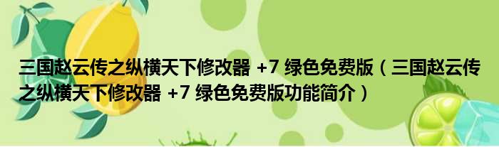 三国赵云传之纵横天下修改器 +7 绿色免费版(三国赵云传之纵横天下修改器 +7 绿色免费版功能简介)