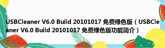 USBCleaner V6.0 Build 20101017 免费绿色版(USBCleaner V6.0 Build 20101017 免费绿色版功能简介)
