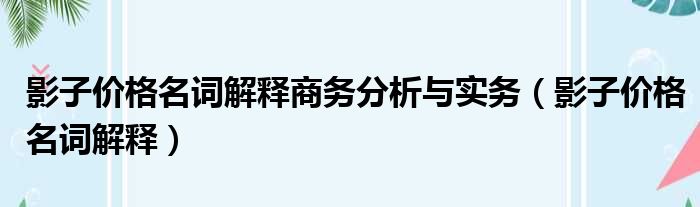 影子价格名词解释商务分析与实务(影子价格名词解释)