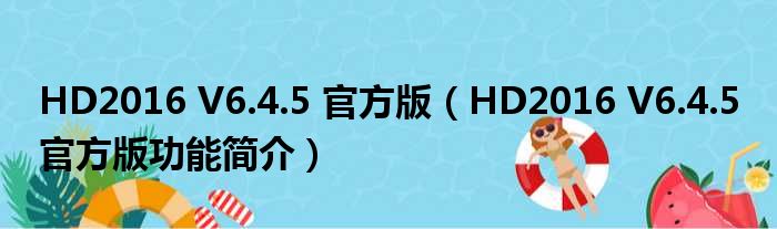 导读 大家好,关于HD2016 V6 4 5 官方版,HD2016 V6 4 5 官方版功能简介这个很多人还不知道,小勒来为大家解答以上的问题,现在让我们一起来看