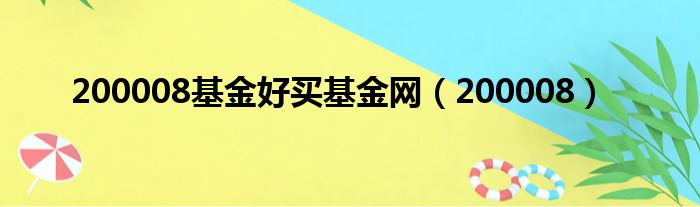大家好,今天小六子来为大家解答以下的问题,关于200008基金好买基金网,200008这个很多人还不知道,现在让我们一起来看看吧!