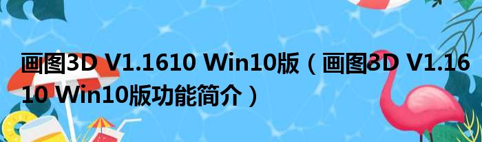 导读 大家好,关于画图3D V1 1610 Win10版,画图3D V1 1610 Win10版功能简介这个很多人还不知道,小勒来为大家解答以上的问题,现在让我们一起
