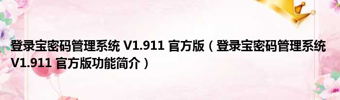 导读 大家好,关于登录宝密码管理系统 V1 911 官方版,登录宝密码管理系统 V1 911 官方版功能简介这个很多人还不知道,小勒来为大家解答以上的