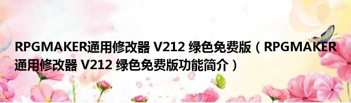 导读 大家好,关于RPGMAKER通用修改器 V212 绿色免费版,RPGMAKER通用修改器 V212 绿色免费版功能简介这个很多人还不知道,小勒来为大家解答以