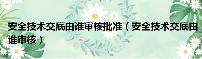 安全技术交底由谁审核批准(安全技术交底由谁审核)