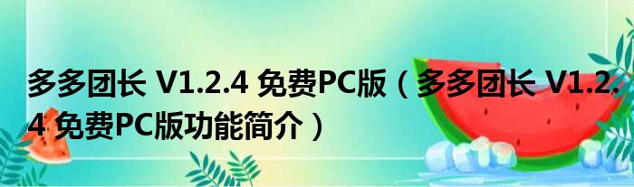 多多团长 V1.2.4 免费PC版(多多团长 V1.2.4 免费PC版功能简介)