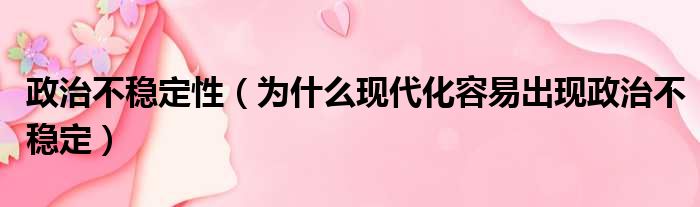 导读 大家好,今天小六子来为大家解答以下的问题,关于政治不稳定性,为什么现代化容易出现政治不稳定这个很多人还不知道,现在让我们一起来看看