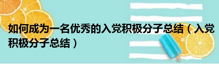 如何成为一名优秀的入党积极分子总结(入党积极分子总结)