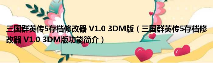 三国群英传5存档修改器 V1.0 3DM版(三国群英传5存档修改器 V1.0 3DM版功能简介)