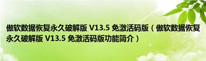 傲软数据恢复永久破解版 V13.5 免激活码版(傲软数据恢复永久破解版 V13.5 免激活码版功能简介)