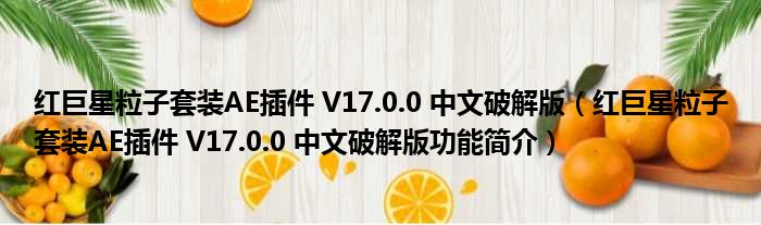 红巨星粒子套装AE插件 V17.0.0 中文破解版(红巨星粒子套装AE插件 V17.0.0 中文破解版功能简介)