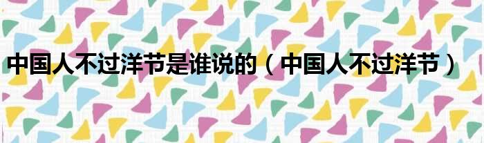导读 大家好,今天小六子来为大家解答以下的问题,关于中国人不过洋节是谁说的,中国人不过洋节这个很多人还不知道,现在让我们一起来看看吧!1、