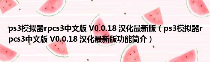 ps3模拟器rpcs3中文版 V0.0.18 汉化最新版(ps3模拟器rpcs3中文版 V0.0.18 汉化最新版功能简介)