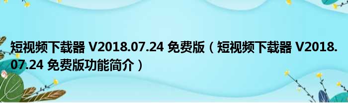 导读 大家好,关于短视频下载器 V2018 07 24 免费版,短视频下载器 V2018 07 24 免费版功能简介这个很多人还不知道,小勒来为大家解答以上的问