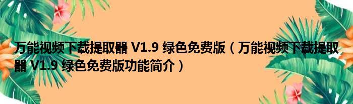 万能视频下载提取器 V1.9 绿色免费版(万能视频下载提取器 V1.9 绿色免费版功能简介)