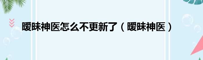 大家好,今天小六子来为大家解答以下的问题,关于暧昧神医怎么不更新了,暧昧神医这个很多人还不知道,现在让我们一起来看看吧!