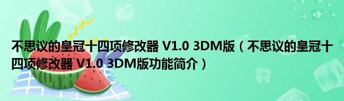 不思议的皇冠十四项修改器 V1.0 3DM版(不思议的皇冠十四项修改器 V1.0 3DM版功能简介)
