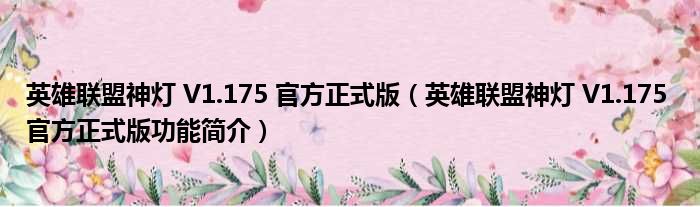 英雄联盟神灯 V1.175 官方正式版(英雄联盟神灯 V1.175 官方正式版功能简介)