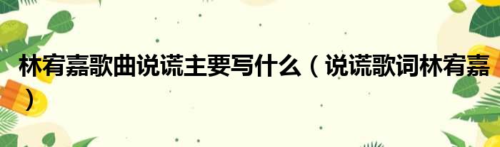 导读 大家好,今天小六子来为大家解答以下的问题,关于林宥嘉歌曲说谎主要写什么,说谎歌词林宥嘉这个很多人还不知道,现在让我们一起来看看吧!1