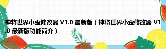 导读 大家好,关于神将世界小歪修改器 V1 0 最新版,神将世界小歪修改器 V1 0 最新版功能简介这个很多人还不知道,小勒来为大家解答以上的问题