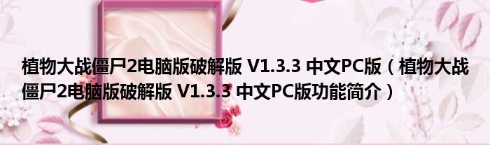 大家好,关于植物大战僵尸2电脑版破解版 V1.3.3 中文PC版,植物大战僵尸2电脑版破解版 V1.3.3 中文PC版功能简介这个很多人还不知道,小勒来为大家解答以上的问题,现在让我们一起来看看吧!